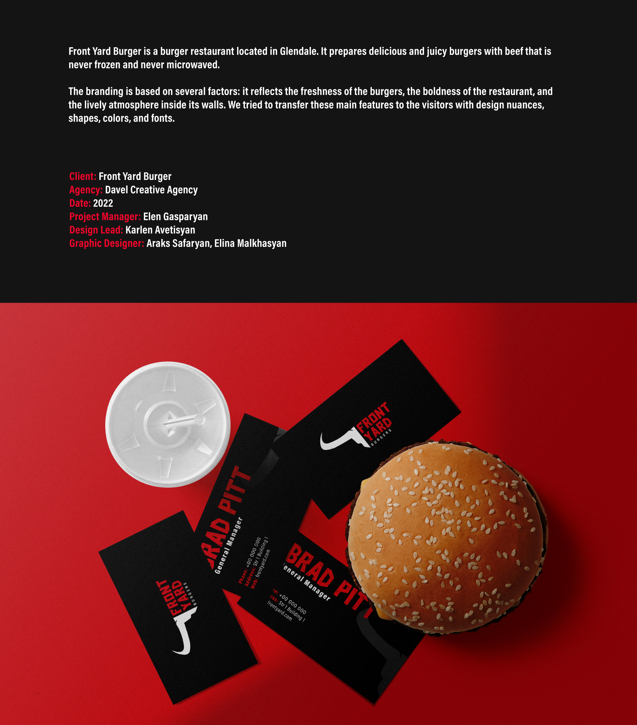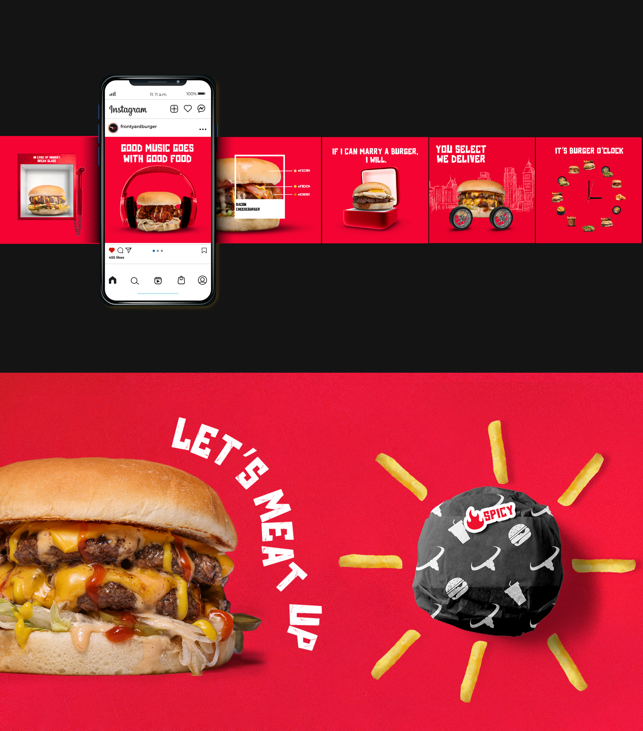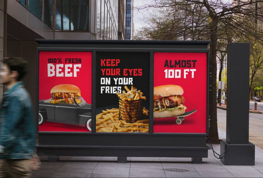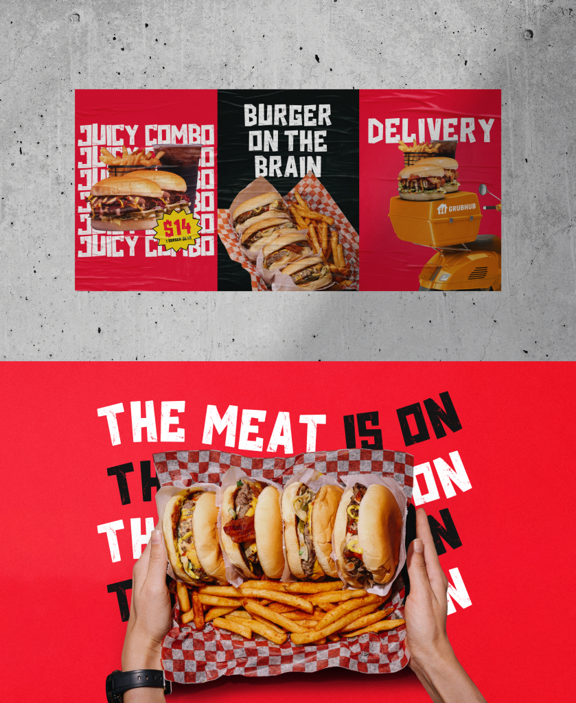 The branding is based on several factors: it reflects the freshness of the burgers, the boldness of the restaurant, and the lively atmosphere inside its walls. We tried to transfer these main features to the visitors with design nuances, shapes, colors, and fonts.