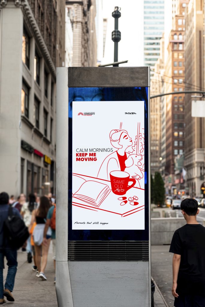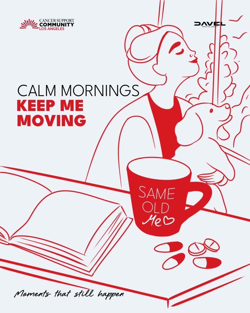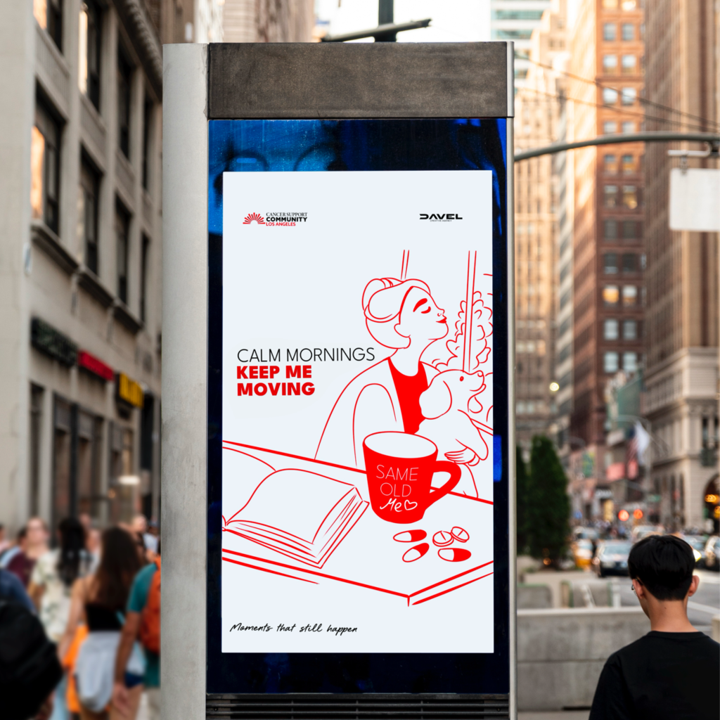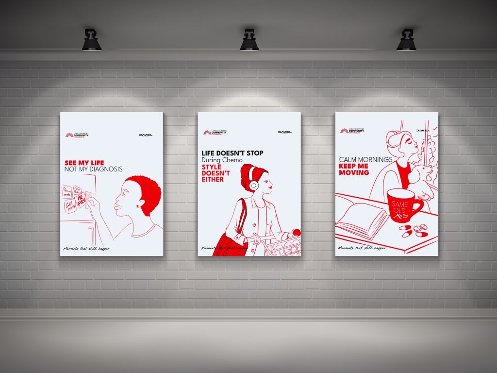 The visual direction follows a minimalist, modern approach. The “Moments That Still Happen” series captures everyday life scenes that continue even through treatment: laughing with friends during chemo, siblings walking together after surgery, grocery shopping with confidence, quiet morning rituals, and the small reminders that fill a life. Each moment reflects quiet strength, normality, and humanity.